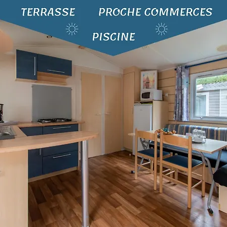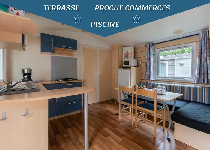 Mobil-Home Entre Terre & Mer biedt zowel uitzicht op de tuin als een bank in de woning. Tot de badkamerfaciliteiten behoren ook een apart toilet en een douche. Er zijn toiletartikelen voor gasten voor het comfort van de gasten.